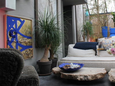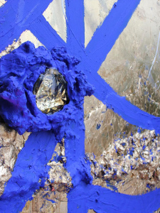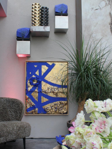 Object size: 150 x 110 cm, handcrated canvas with painted and limber gem flower details