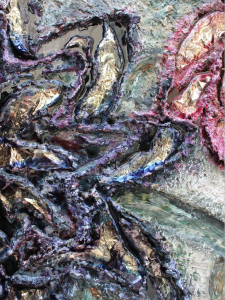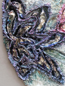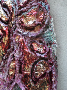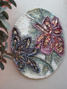 Object size: 150 x 110 cm, handcrated canvas with painted and limber gem flower details